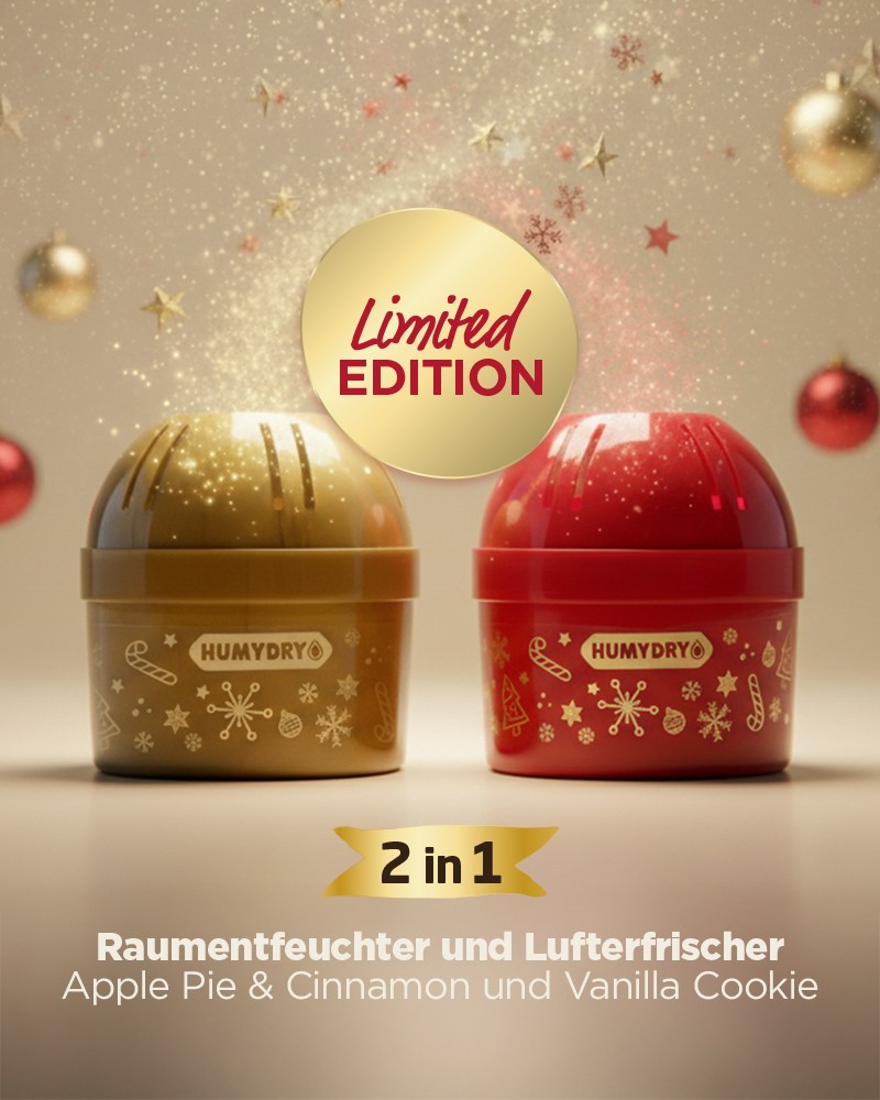 Los deshumidificadores Mini 75g aroma Vainilla Cookie y Apple Pie & Cinnamon funcionan sin electricidad ni baterías. Reducen el exceso de humedad por condensación y los olores a humedad y crean un ambiente interior saludable (40-60%).