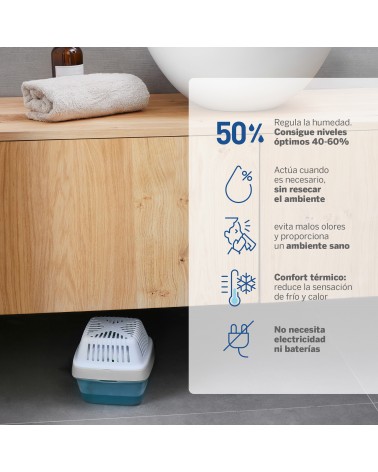 Absorbe el exceso de humedad y ayuda a prevenir moho, condensación y olores desagradables.
