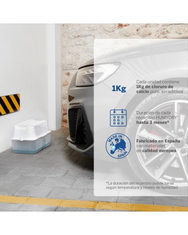 Al usar un recambio antihumedad Humydry recuerde comprobar que la capacidad de la cubeta es la adecuada para el recambio que va a utilizar. Si la capacidad de absorción del recambio es mayor que el de la cubeta, el líquido podria llegar a rebosar. Los recambios deben usarse siempre dentro de un aparato antihumedad.